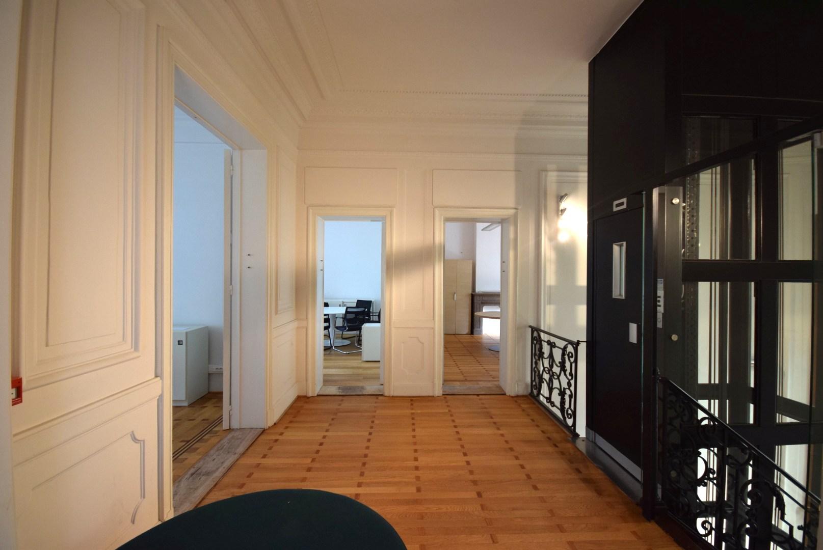 Dit kantoor onderscheidt zich door zijn charme, helderheid en ruime ruimtes. Bij binnenkomst wordt u ontvangen in een elegante hal. Via de lift kan u de andere niveaus bereiken.