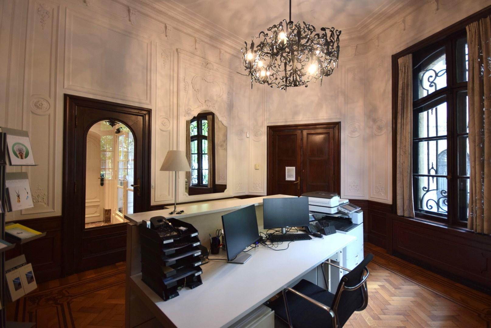 Dit kantoor onderscheidt zich door zijn charme, helderheid en ruime ruimtes. Bij binnenkomst wordt u ontvangen in een elegante hal. Via de lift kan u de andere niveaus bereiken.