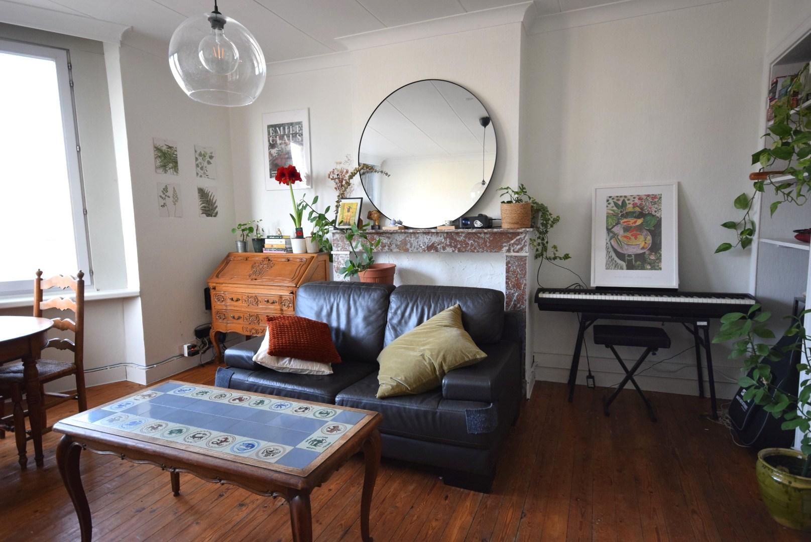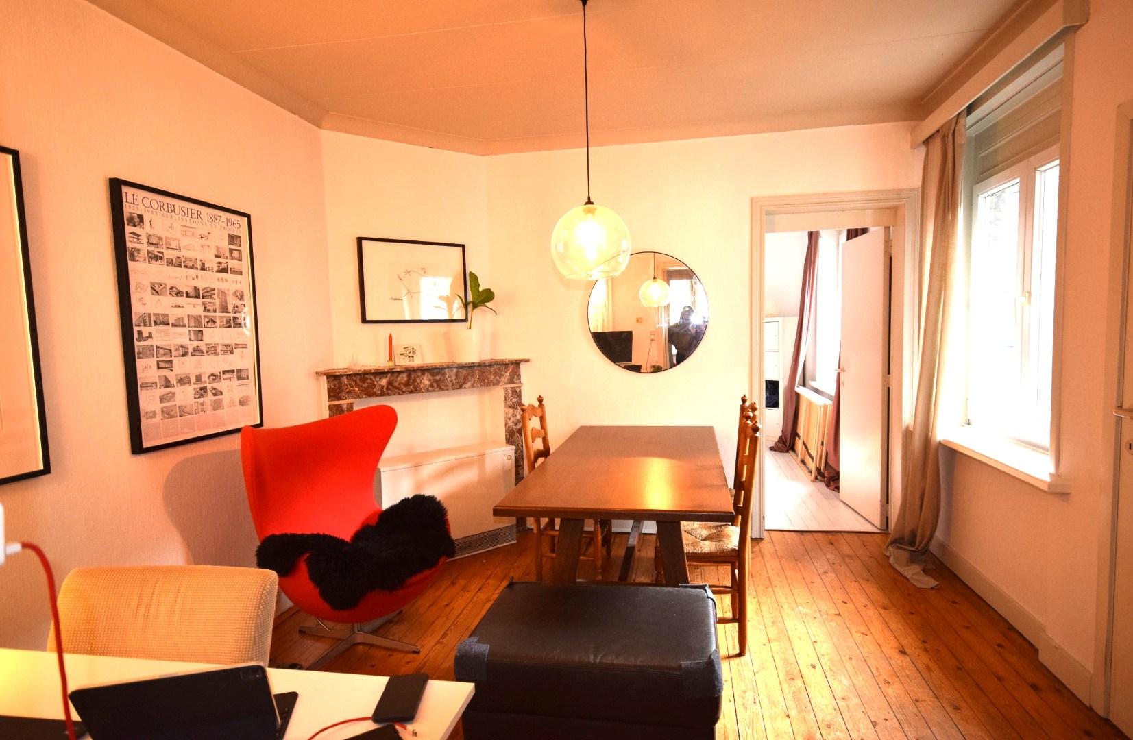 Tof en lichtrijk appartement op derde verdieping (geen lift) bestaande uit hal met ingemaakte kast, living met plankenvloer, keuken met gootsteen, kastjes, kookfornuis en dampkap, bureel of eetplaats, slaapkamer met plankenvloer en berging, badkamer met douche, lavabo en toilet.